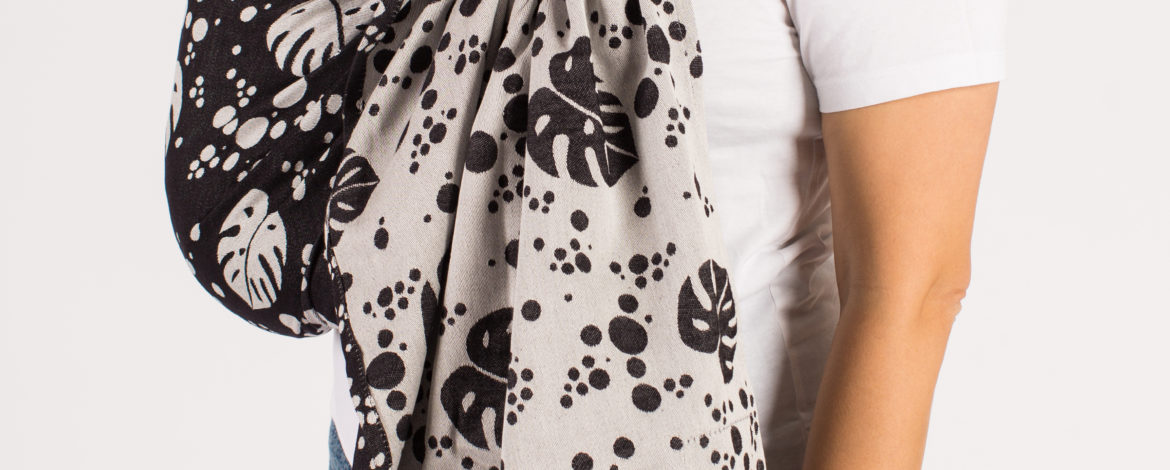 O ISARA Philodendra Black Denim Ring Sling é feito com algodão orgânico 100% puro (certificado GOTS).