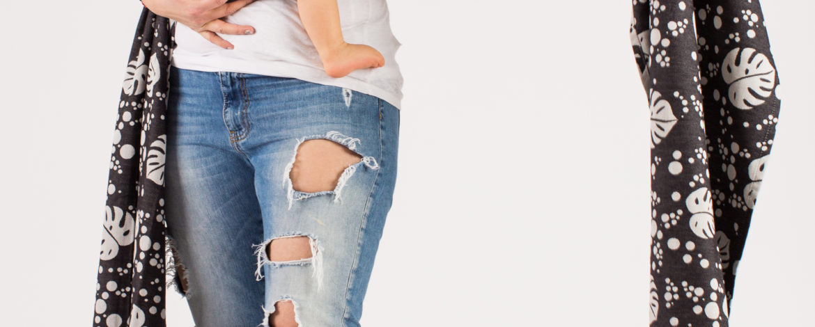 O ISARA Philodendra Black Denim WOVEN WRAP é feito com algodão orgânico 100% puro (certificado GOTS).